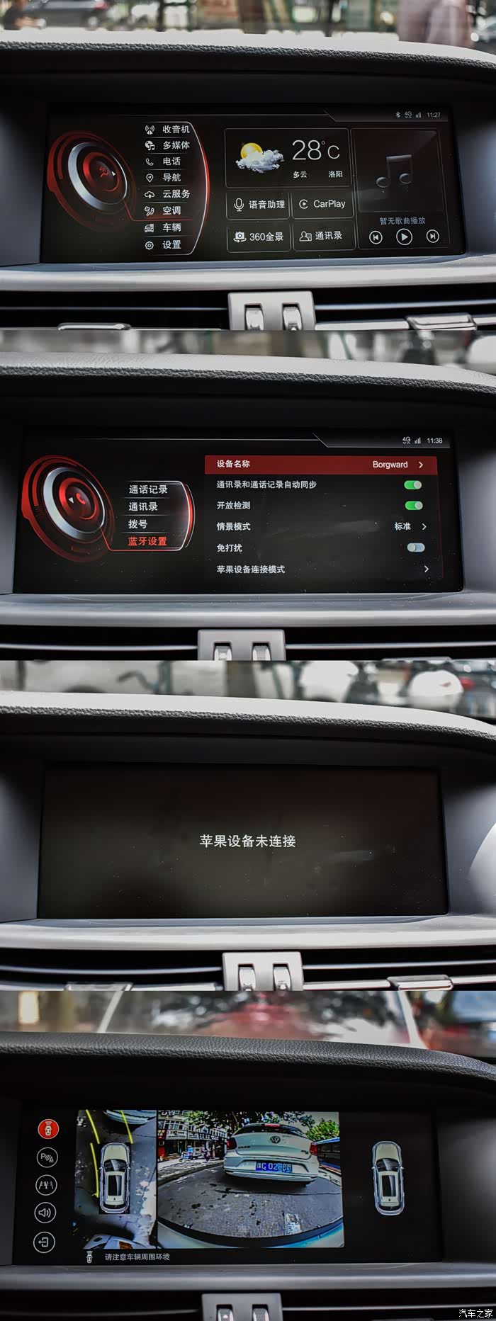 屏幕是内嵌式的,所以可以有效避光,整个中控的UI设计还是很简洁的,支持按键控制和触摸控制,12.3英寸的屏幕素质还可以就是360环视的显示效果差强人意,Carpaly我没有体验,但是蓝牙死活连不上让我对这辆车好感下降了一大半,语音助手也是半死不活,网上都说好的导航我看也一般,因为我们市区现在在修地铁所以导航也不是很准,没有手机实时更新靠谱。