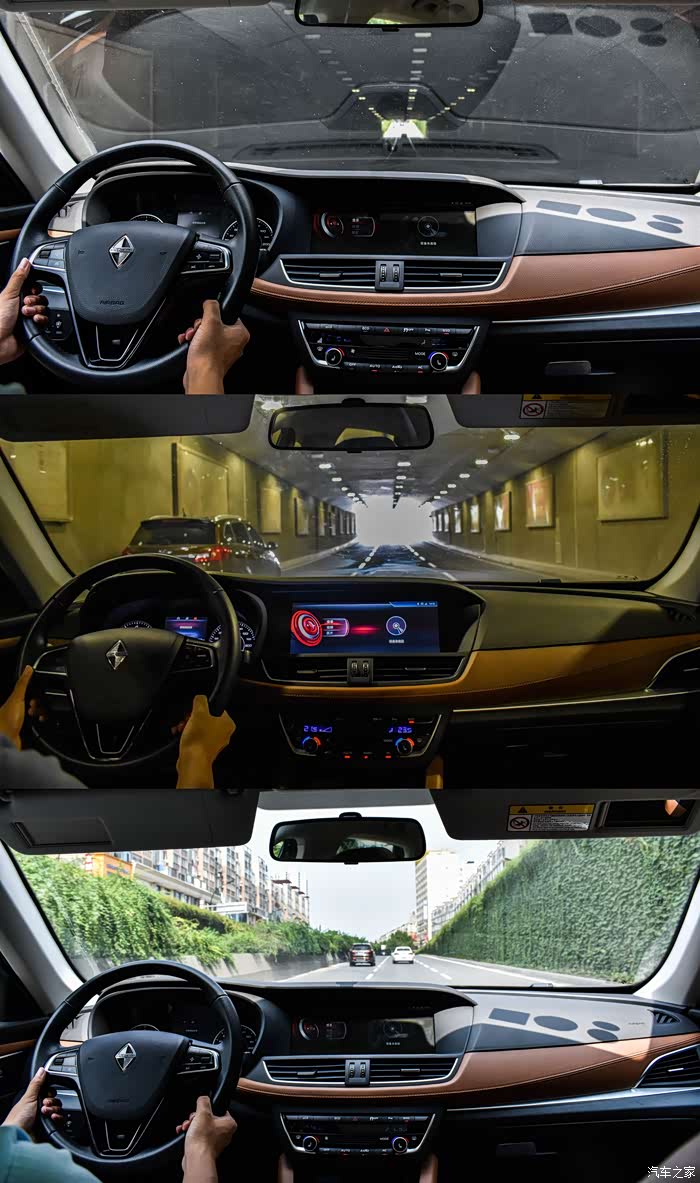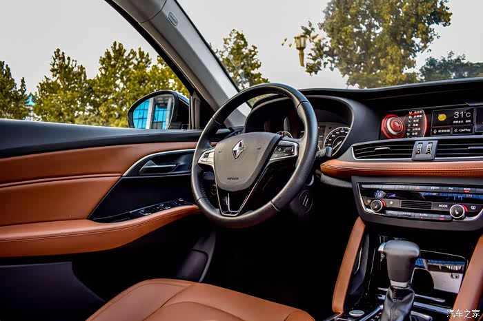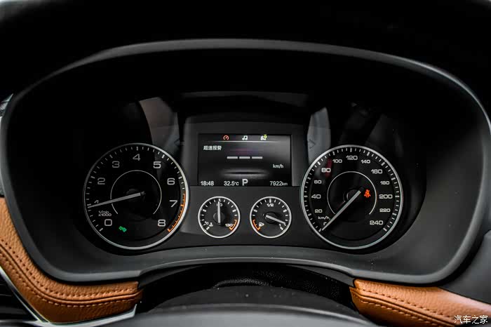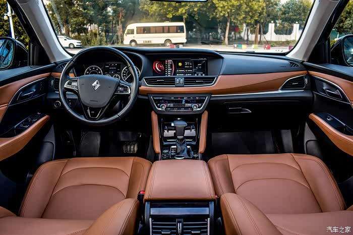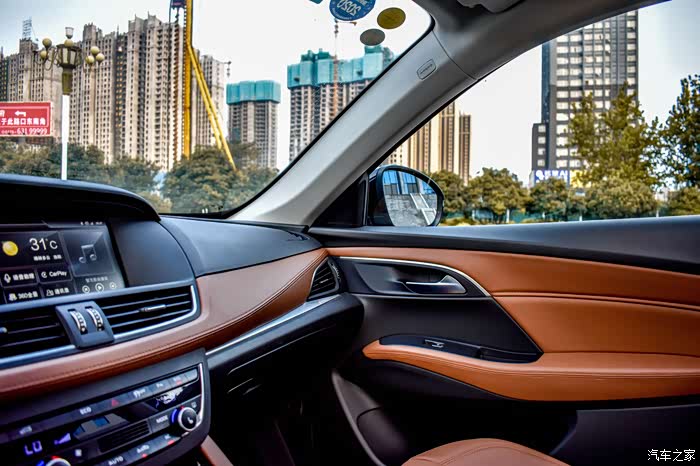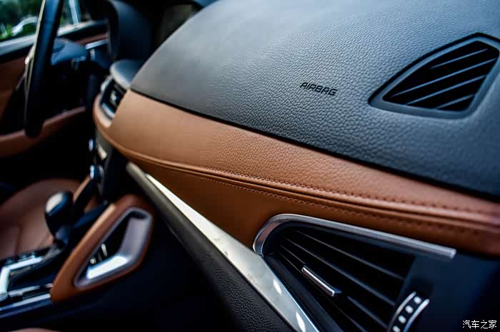 内饰方面的豪华感营造的还是非常到位的,中控上方与下方都使用了软质材质,棕色部分全是皮质,用料十分厚道,棕黑搭配也不过时,面子里子都有了