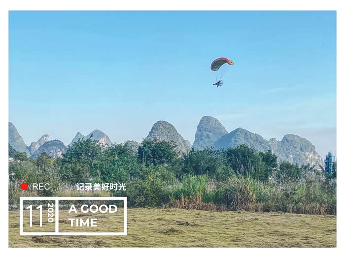 该营地位于阳朔遇龙河畔,风景迷人,是目前国内规模较大且最美的航空飞行营地(占地196亩),其中绿化面积42000多平方,跑道面积8000平米,营业用房面积2000平米,空域开阔,可容纳六架轮式双人动力滑翔伞同时起飞。