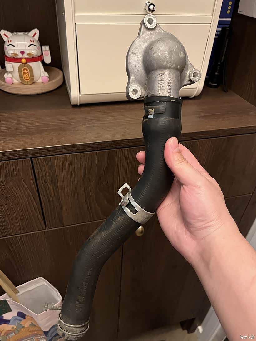 6,防冻液回水管裂了,多处漏点,淘儿找了个店,买了个原厂的,发过来非但不是原厂,型号都不匹配,价格还楞贵,我给他投诉了,个人卖家无法假一赔十。买了游标卡尺,自己量了一下管子内外径,5块买了一根换上了。