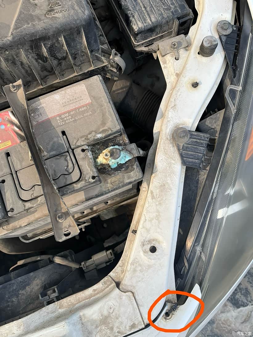 1. 蓄电池恰好挡在节温器前方,得先将负极、正极拆卸,再把电池搬开。