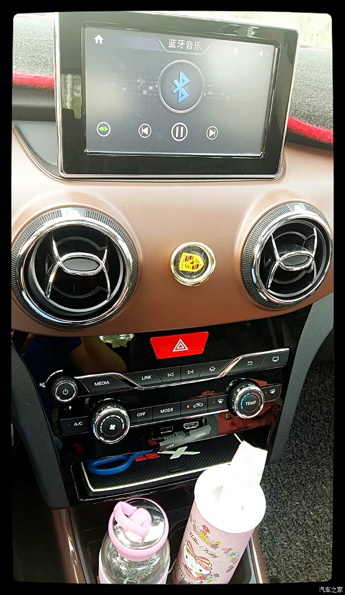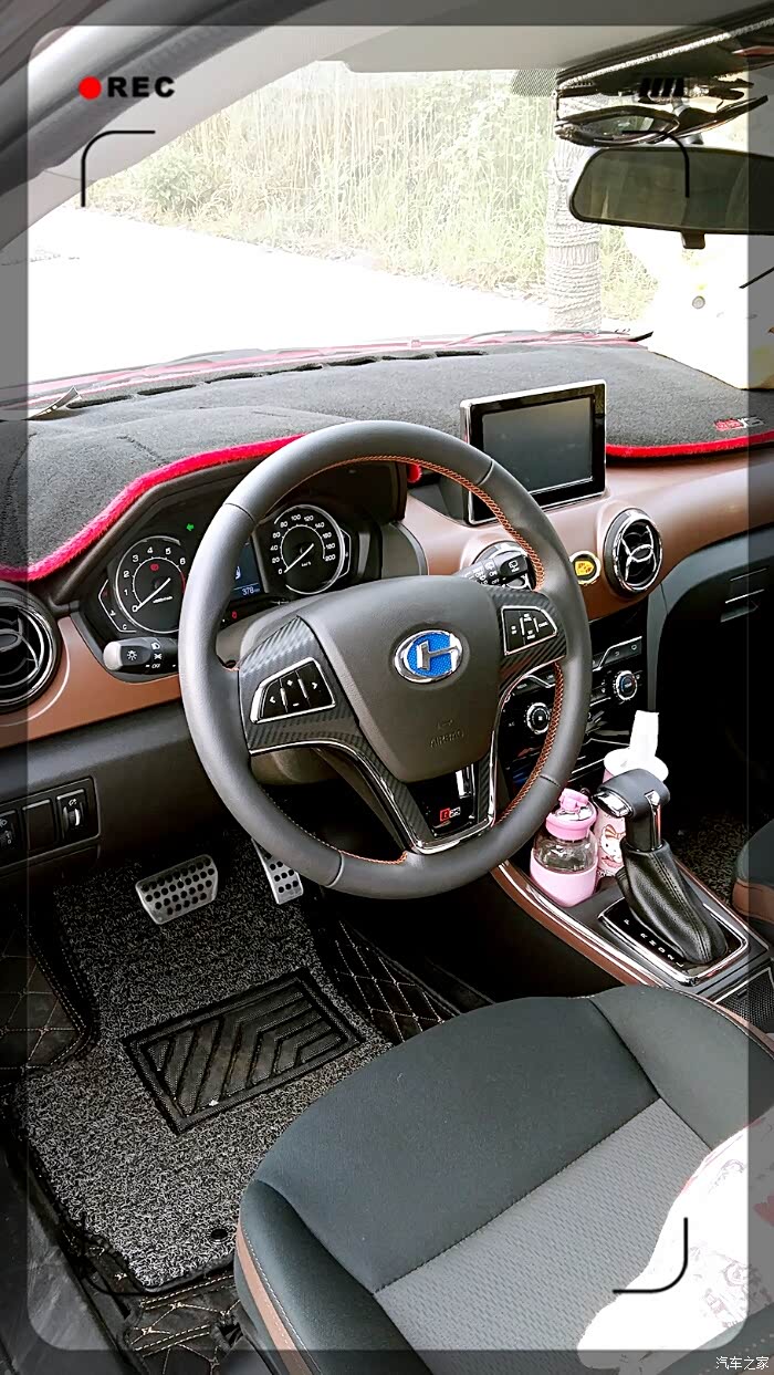 其实那天第一眼见到小Q之后,在网上就对小Q开始了全方位的了解和比较,仿大奔的中控台,摁键布局也简单明了,棕色的内饰沉稳大气,红色内饰时尚动感,蓝色内饰活泼明亮,多功能方向盘左边可以调节音量和选台,右边可以控制定速巡航,自动挡的两款配置都配备了天窗,天窗的作用很多哦,散热快,在南方的阴雨天开启可以有效的去除前挡风的雾气
