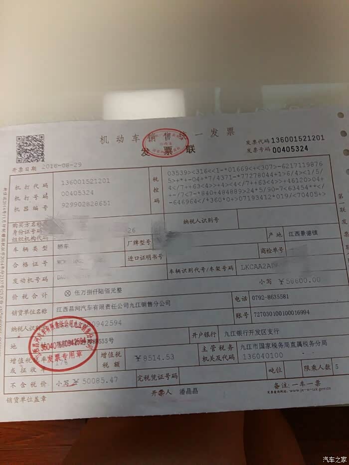 千年的等待,只为这一天。交全款,提车,自己上保险,自己上牌,交税,一天的来回奔波就不一一累述了,至此,我的购车大计终于画上了一个圆满的句号。在此特别感谢群里的“Q25”"橡树”“洛辰”“d调”等等,是你们在我最纠结的时候给了我最正确的选择,让我不再纠结,选到了我最中意的车,非常感谢家人朋友们对我的支持