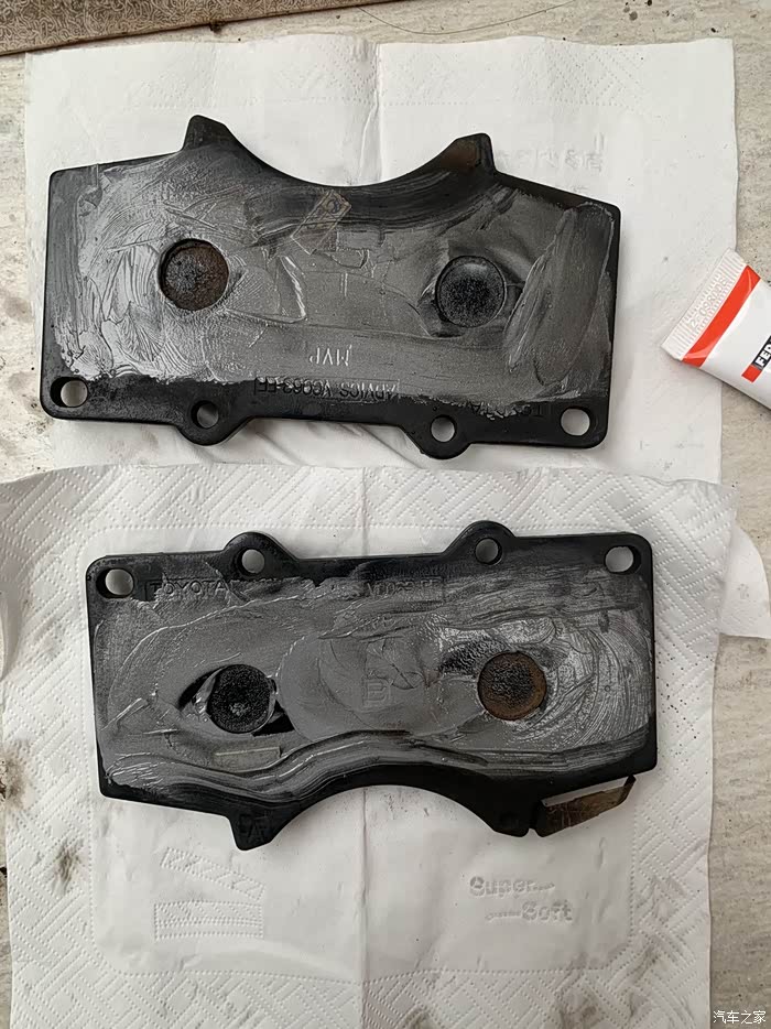 先在刹车片背后涂上耐高温脂,