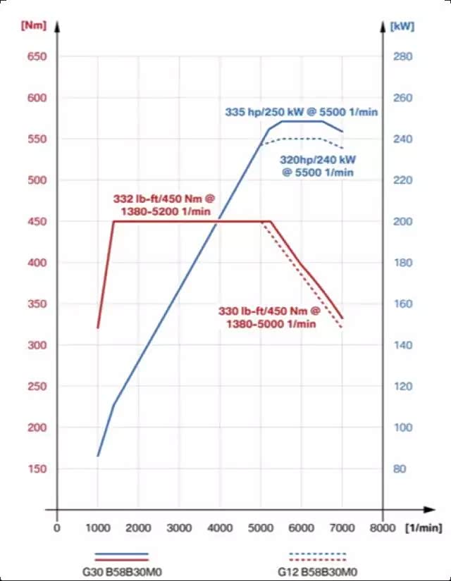 宝马3.0T:250kW/5500-6500、450N·m/1380-5200