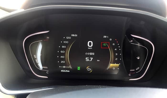 红框部分显示灯光信息,我是白天拍的照片,显示的是日行灯,打转向就会显示转向灯,晚上打开大灯则显示大灯信息。