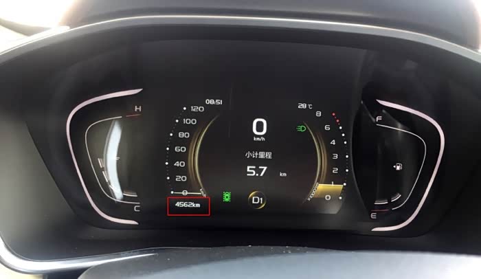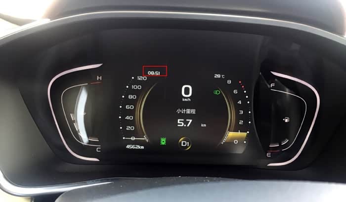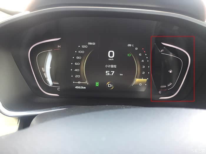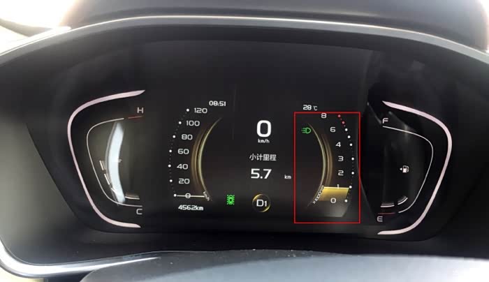 下面这个红框显示当前的档位。挂驻车档,空档和倒车档都会显示。D档有两个档位,目前显示的是D1档,D2是加力档。