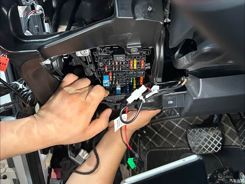 接下来就是线路连接了。师傅告诉我,不同的车子走线位置不一样。我的车子需要拆除电瓶、滤芯、电脑版等部分,按照原厂线路走线。虽然比较费劲,但这样可以避免不规整和安全隐患。在走线的过程中,师傅特别强调了保险丝的重要性。为了确保改装后的电路安全,师傅首先拆解了相关的保险丝,并安装了独立的保险丝模块。这种独立的保险丝可以在后期出现意外故障时自动断开,保护车辆的其他电子系统不受影响。
