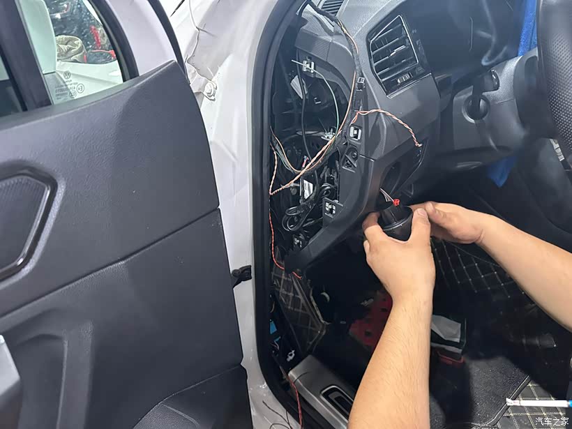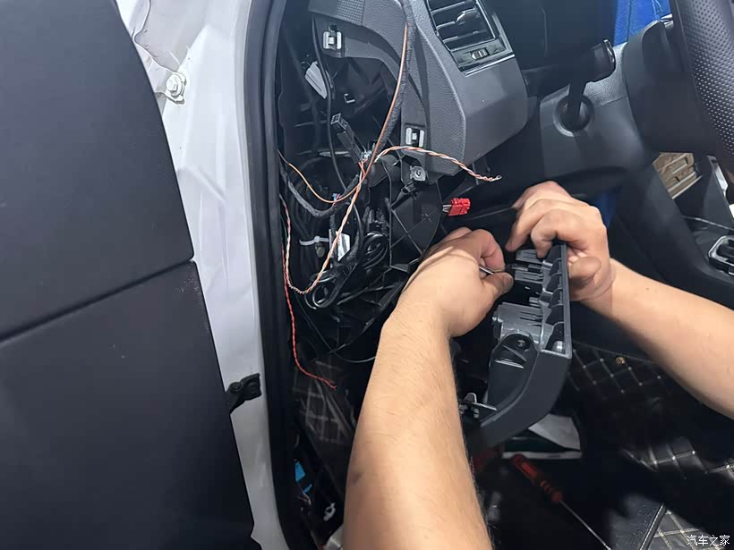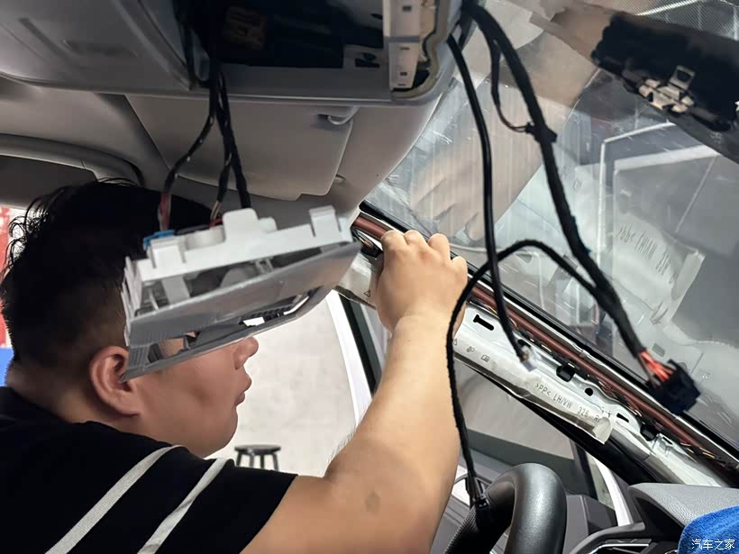 为了更好地走线,师傅还拆除了门板、自动大灯调节控制面板、侧板和A柱板。这一步主要是为了方便后续的摄像头安装和线路连接。拆除过程中,师傅非常细心,每一步都做得非常到位,确保不会损坏车内的其他部件。