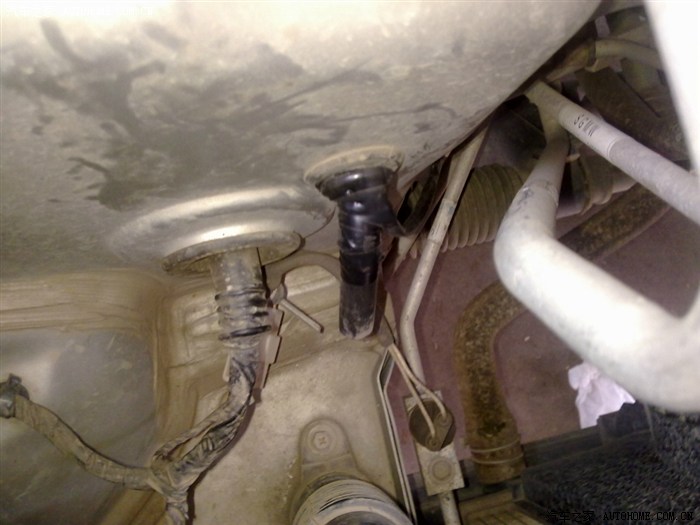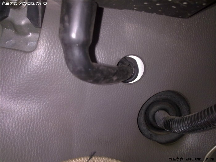 我是走这里的,这是空调滴水孔,橡皮做的,从它边上可以进出线,俺就走这里过,然后线走车底跟管子一起过
