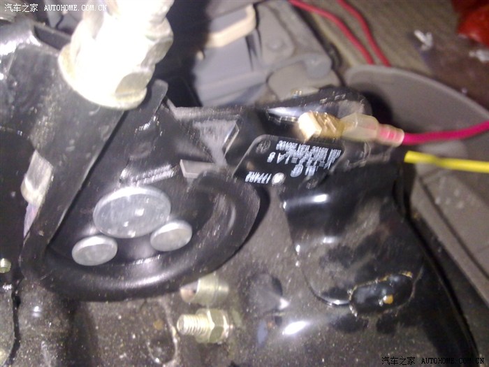 我是从这里取电的,在主驾下面机油标头上那根线的粗的就是我加上去的,这里取电主要是钥匙拧到二档风扇才开始工作,不然有时候开收音机啥的就启动烦.不过这样可能会影响到油泵工作,于是就用这线引控制电,然后加了上面买的继电器,直接电瓶供电,用这根线来控制风扇.
