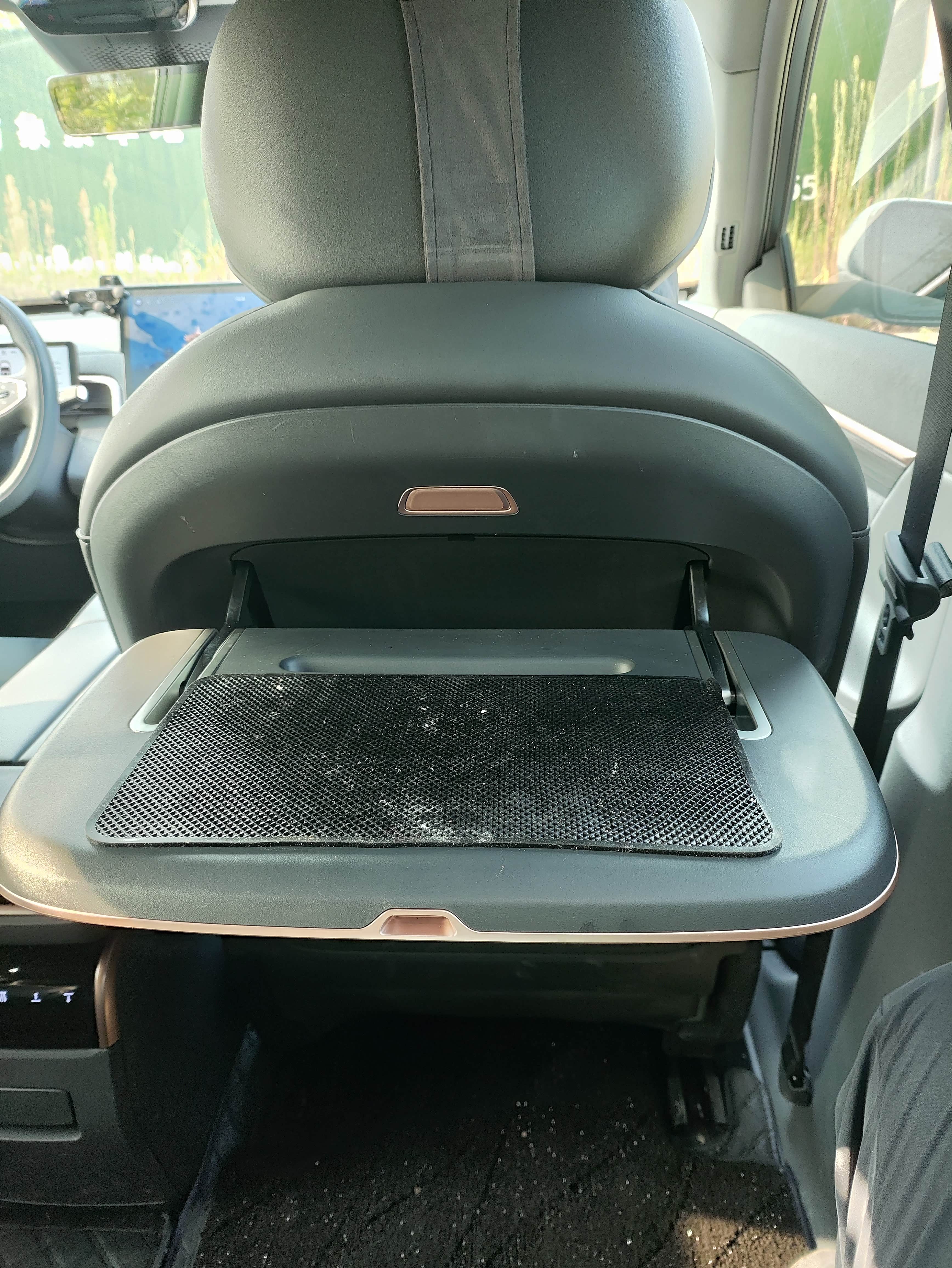 ?第二排的小桌板:带娃出门时,能放绘本、平板电脑,老人还能在上面泡杯茶,折叠起来又不占空间;?