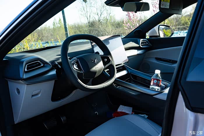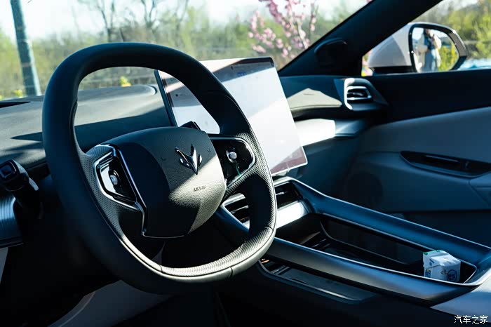 灰色的内饰很有科技感,春光洒在方向盘上,非常有感觉