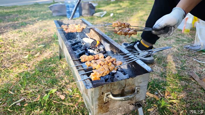 午后与老友会合时,后备箱成了魔法空间。朋友搬出锃亮的烤架与果木炭,我则展开蛋卷桌与月亮椅,折叠帐篷在草地上迅速撑起一片私密天地。嫩羊肉在炭火上滋滋冒油,孜然混着辣椒粉的香气勾得人直咽口水。还没有置办外放电枪,不然一定要来一场尽情的火锅盛宴。