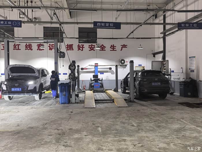 维修技师先给方向盘和座椅套上防护罩,然后开着车进入维修工位,举升机托起车身时,底盘护板上的几道刮痕格外显眼,应该是有次过一个陡坡刮到的,但还好影响不大。
