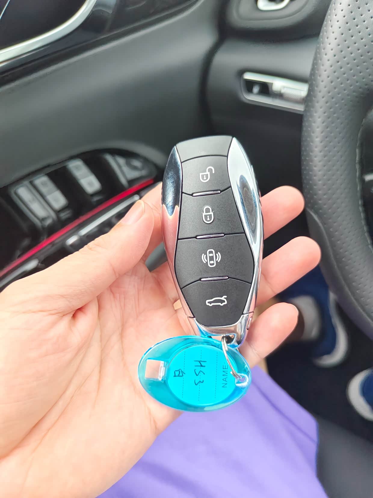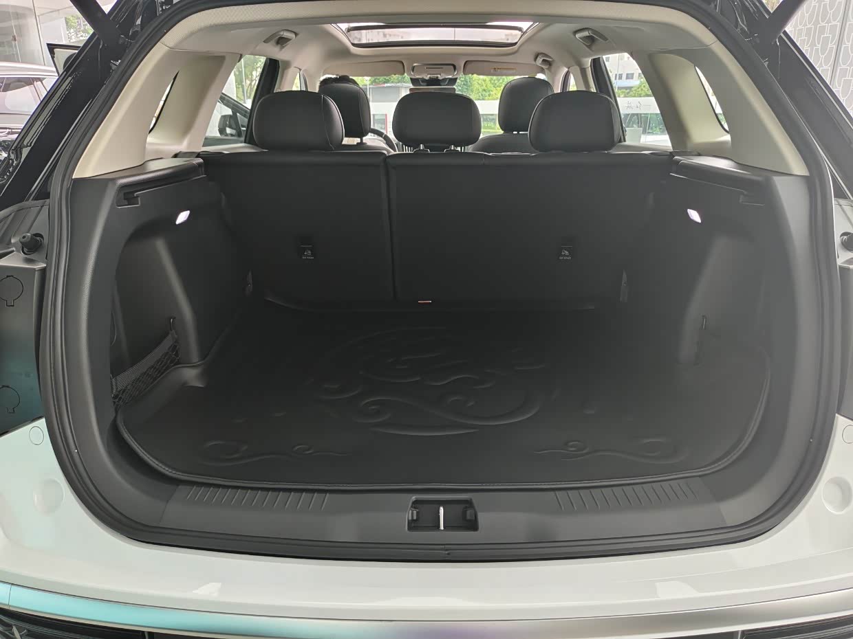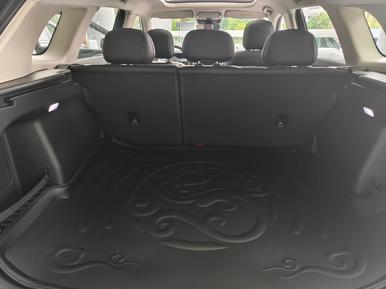 这款车后备箱是带感应的,因此后面没有物理开启按键,它的按键在驾驶舱内。