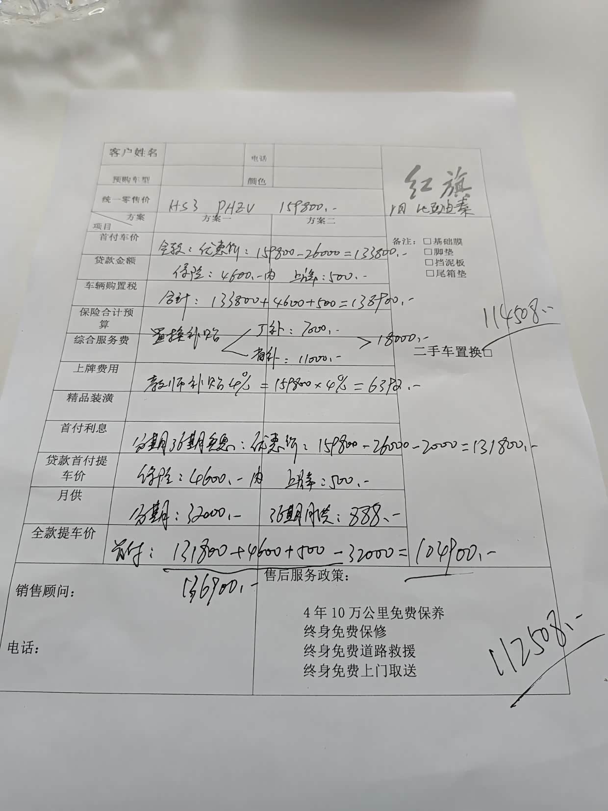 红旗另一个让我佩服的是它的四年或者十万公里免费保养的政策,以及终身免费保修的政策。