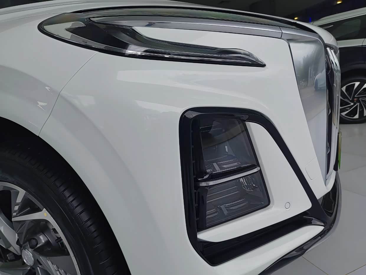 红旗的大灯设计的还是挺别具一格的,采用的是分体式的设计,C字形的日行灯和竖置的灯组搭配,使得前脸整体的布局更加协调了。