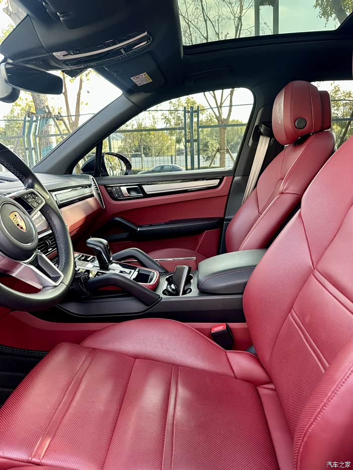 卖点:最新款黑红卡宴 、选配21轮、 bose音响 前排座椅加热通风按摩 360全景 电吸门 玻璃膜、新换米其林轮胎、4S选配3.98万车衣等…配置超高 配色经典 比全新怒省40+…