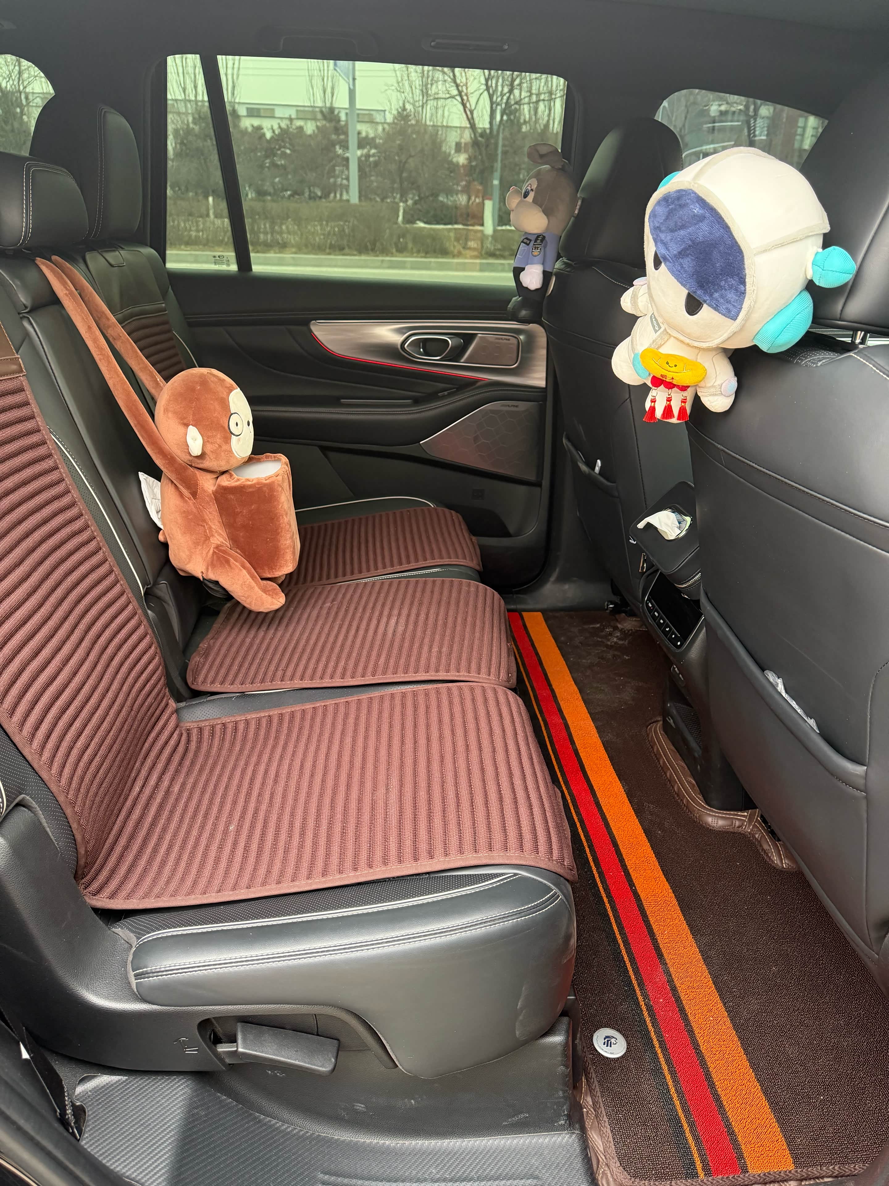传祺GS8的空间表现,完全配得上它“中大型SUV”的身份。车内精致的内饰质感与淡淡的高级香氛扑面而来,没有廉价的塑料感,取而代之的是大面积软质包覆、细腻缝线与金属饰条的搭配,触感温润,格调十足。坐进驾驶座,身体被宽大厚实的座椅稳稳包裹,侧翼支撑恰到好处,无论是腰部、背部还是大腿位置,都能感受到均匀且柔和的承托,仿佛坐上了一张移动的高端沙发,长时间驾驶也不会产生紧绷与疲惫。,后排空间更是宽敞,腿部活动自如,即使是三个成年人并排乘坐,也不会感到拥挤。