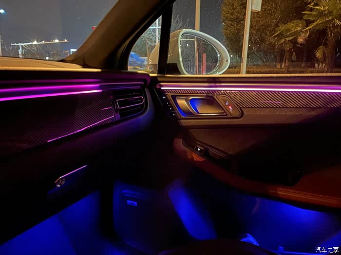 没有选舒适照明,晚上感觉车里好暗,后来去改了替换式的64色氛围灯,晚上亮堂多了,有人说汽配城风格,没办法,macan没有原厂,能选的产品就这几种。个人还是很推荐的,缺点是不能跟大灯同步开启,白天也亮着,只能把亮度调低一点。