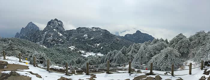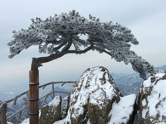 第五天游黄山,从云谷寺坐索道上山,游始信峰、北海、飞来石,午后到达光明顶,然后是鳌鱼峰、岱宗逊色、迎客松。雪后的黄山美不可言,尤其是后山,仿佛人间仙境。这次看的是黄山雪景,以后没下