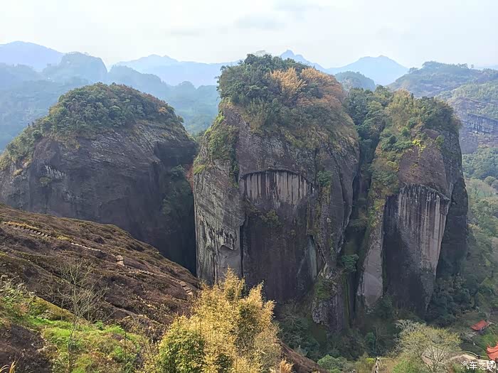 第二天又磨磨蹭蹭九点多才到景区,车停景区南大门售票处,上午爬了天游峰,然后直接去漂流点,在那里的小镇找一家餐馆吃午饭,饭后在九曲溪漂流,漂流完去大红袍景区,去看了那几颗峭壁上的大红袍茶树。其余的景点就没看了,武夷山景区就景色而言,还算不错,一日游刚好,看三个最主要景点足矣。