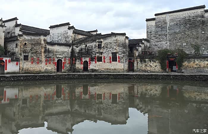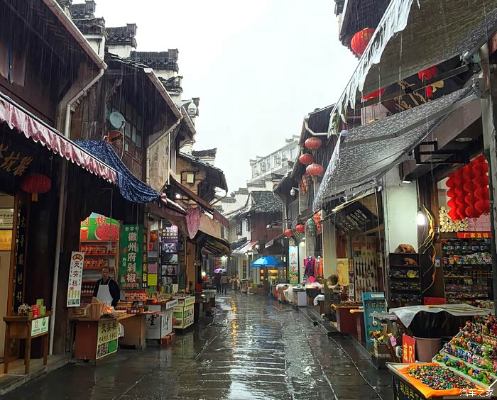 第三天直接驱车取道江西上饶、浙江衢州,午后两点到达安徽黄山市屯溪老街,逛老街半小时,吃饭走人。直接去宏村,沿途路过的村庄都是徽派特色,入住宏村里的客栈。吃饱喝足后夜游宏村。