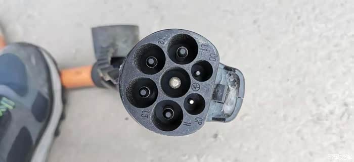 尺寸标准,国标充电头至少有五个插针,分别是火、零、地和CC,CP,如果是380V,则有七个插针(加上L2和L3.下图是一款380V国标的充电头: