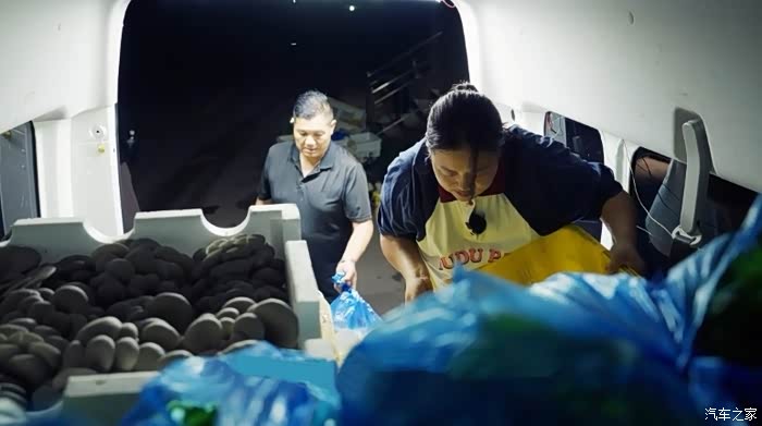 我最喜欢的是这个对开式尾门,可以270度全开,上大件生鲜筐很方便。另外它的地台不高,只有五十多公分的样子,我个子矮,搬货上下车也不费劲,这个设计对我们太友好了。
