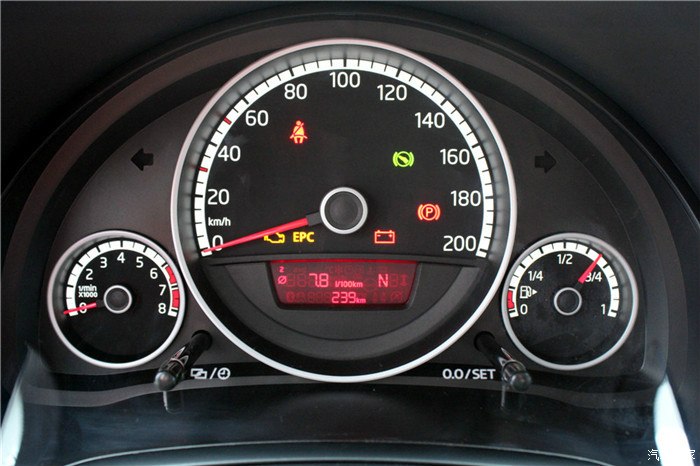 方向盘的轮辐上喷涂了钢琴漆,很有质感。仪表盘很清晰,车辆的基本信息也算是一览无遗了。