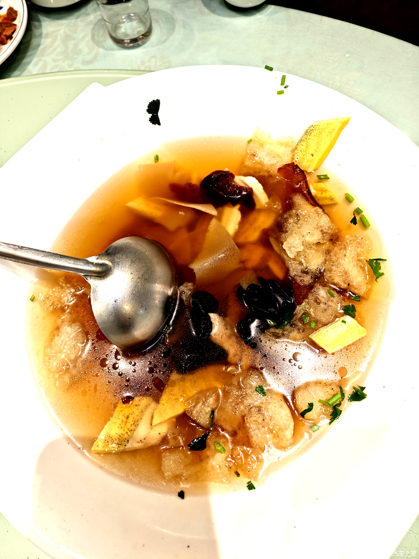 四十公里的路程,新能源车开着格外省心,静谧又平顺,孩子们在后排叽叽喳喳分享着小零食,看着平板动画片,时不时和小爱同学来个互动,一点也不觉得枯燥。40分钟左右的时间就抵达目的地——博山新鑫餐馆,这是一个网红店,早就听说这里的博山菜地道,果然名不虚传,提前预约来了还等了10分钟。酸辣适口的鱼肚参汤(看店里的宣传这道菜曾获奖),美味荟萃的博山酥锅、外酥里嫩的博山炸肉、琉璃地瓜、香气浓郁的葱炒蹄筋,甜咸爽口的红烧豆腐,每一道菜都戳中味蕾,孩子们也一改平时挑食的毛病,大口大口吃得香,媳妇更是连连夸赞,说这趟来得太值。