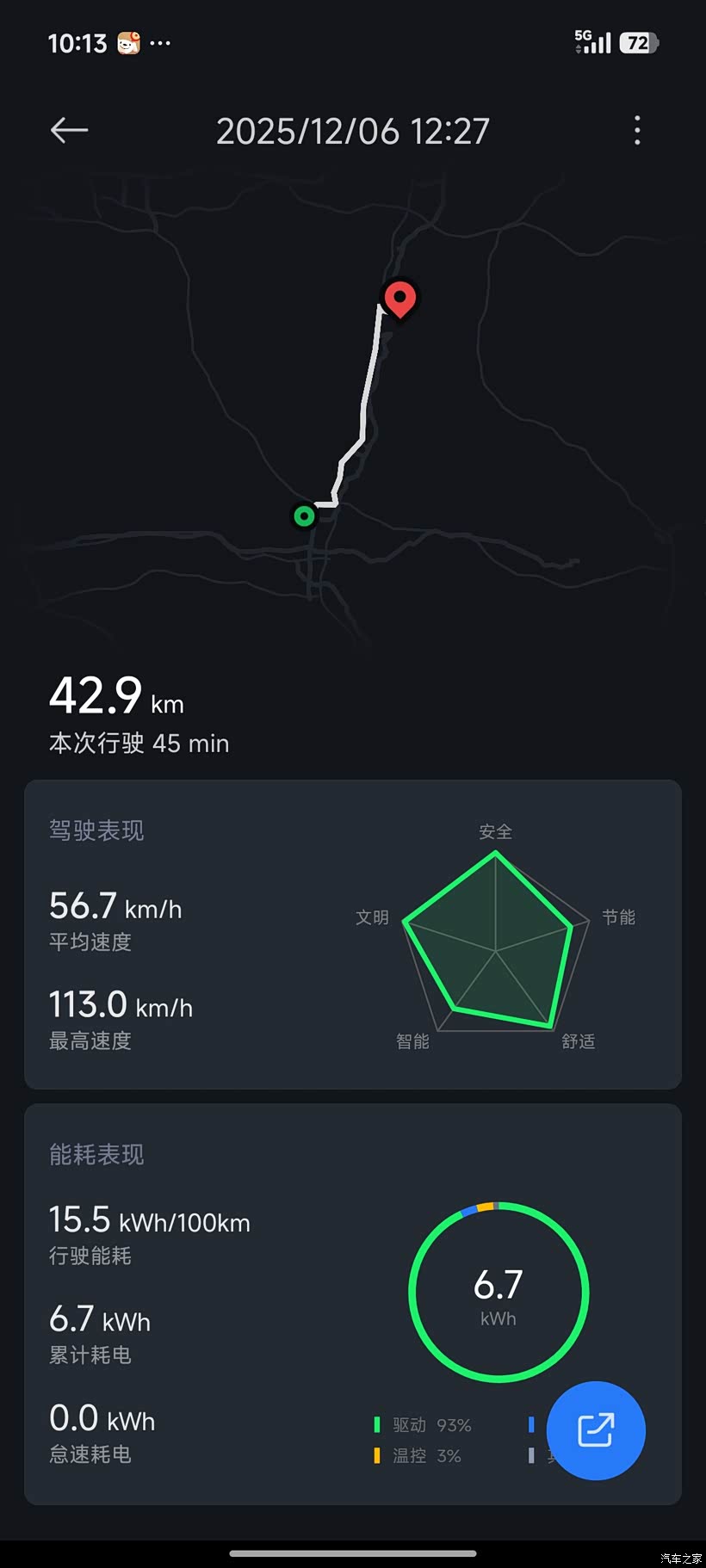 返程时夕阳西下,晚风温柔。来回八十公里,结算电费居然不到8块钱,新能源车的经济性真的太香了。这一天,有美食暖胃,有美景相伴,还有家人在侧,没有匆忙的赶路,只有慢悠悠的惬意。简单的短途出行,却装满了平凡生活的幸福,这样的周末,真让人回味无穷。