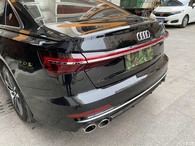 分别是碳纤内饰,蜂窝中网,电动尾门 ,四出尾喉,贯穿尾灯