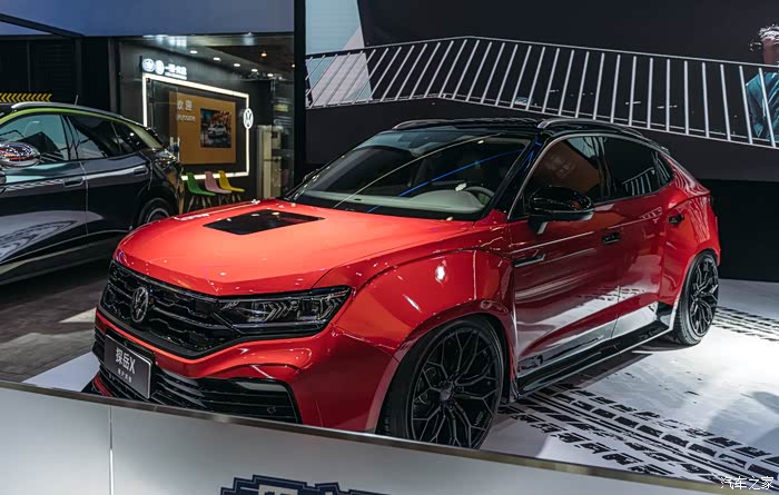 展台里还出现了很多和用户共创的车型方案,个人认为这个探岳X非常霸气,除了机盖挖孔有点画蛇添足,有点为了改而改~