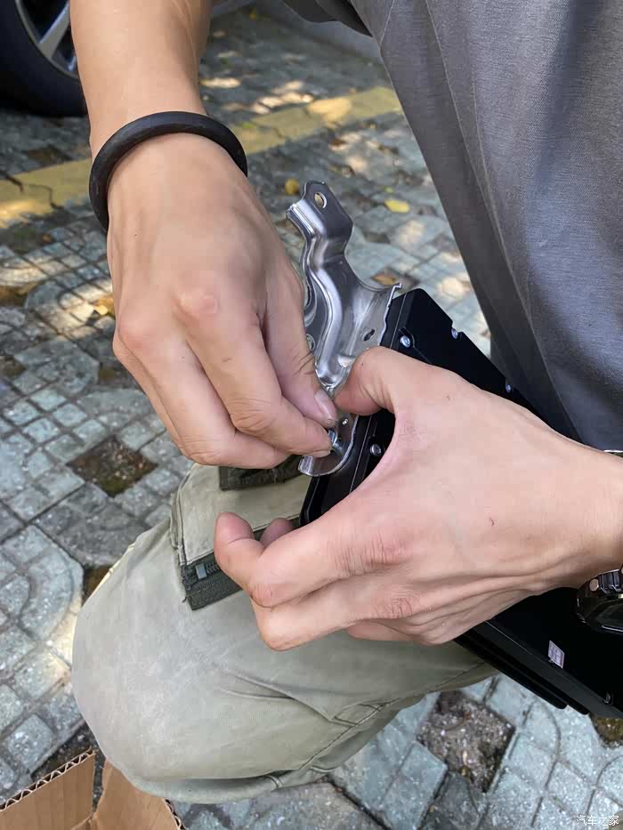 (2)功放其实不需要拆座椅。先把主驾驶座椅头枕拆了,然后把座椅挪最后、调最高,见到有个塑料盖和2个卡扣,用螺丝刀轻轻撬开。然后把座椅调到最前面最高,在地板就可以看到这块塑料板还有一个卡扣,同样方法拆掉,然后盖板就顺利拿下来了。把拆下来的先锋功放尾部支架装到马克上