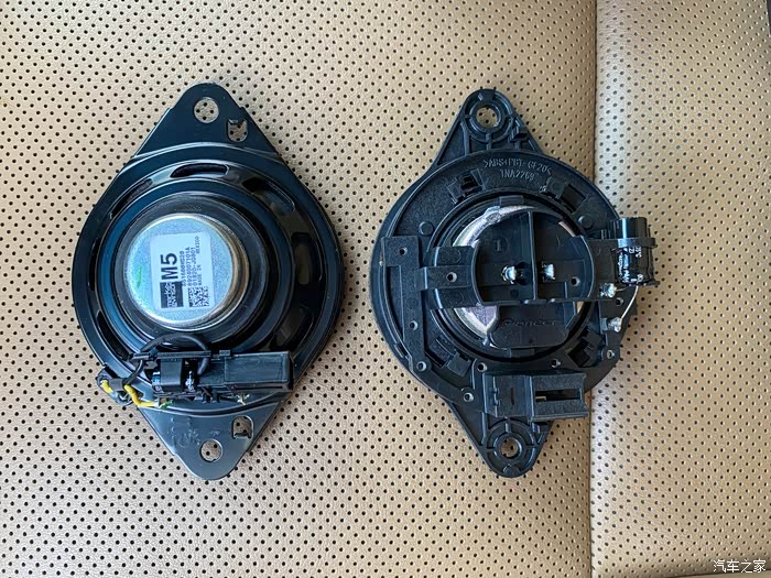 后车门同样有3个螺丝固定,拆装同前门。唯一不同的是后门是3寸中高音同轴喇叭M5,是固定在内饰板上面的。将原车喇叭固定螺栓取下,换新喇叭即可。