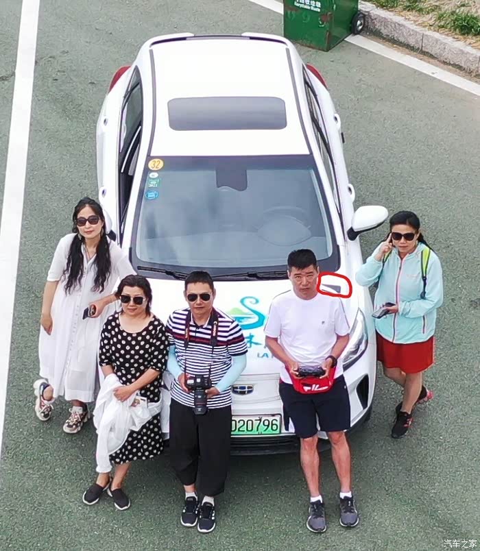 在这里还有个小插曲,我在玩无人机的时候哥们给我打电话,因为我在遥控无人机就把手机开免提放到车的引擎盖上(注意下账照片红圈处就是我的手机),等我玩完无人机就直接上车开车走了,速度上来后看到引擎盖上飞起个东西,当时我就在想,完了,是我的手机,赶紧停车倒回去找到手机一看,只是摔裂了三道,不过还能用,华为手机质量还是杠杠滴