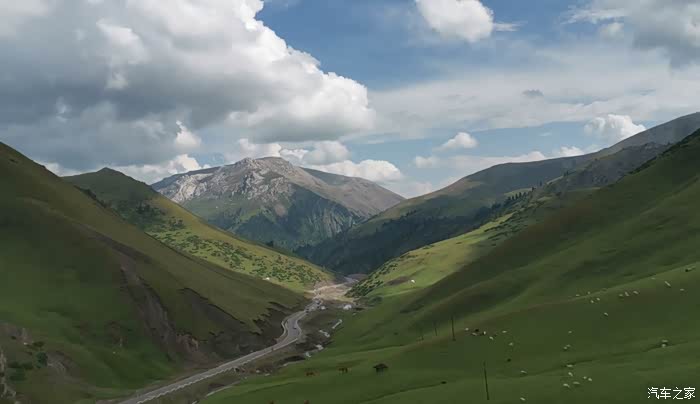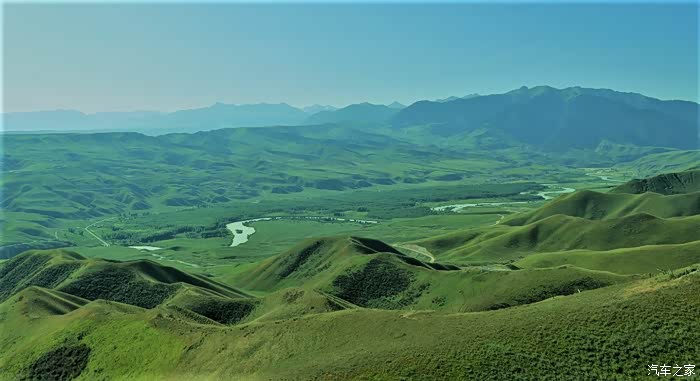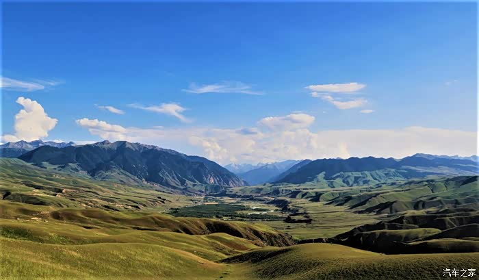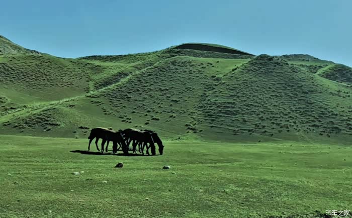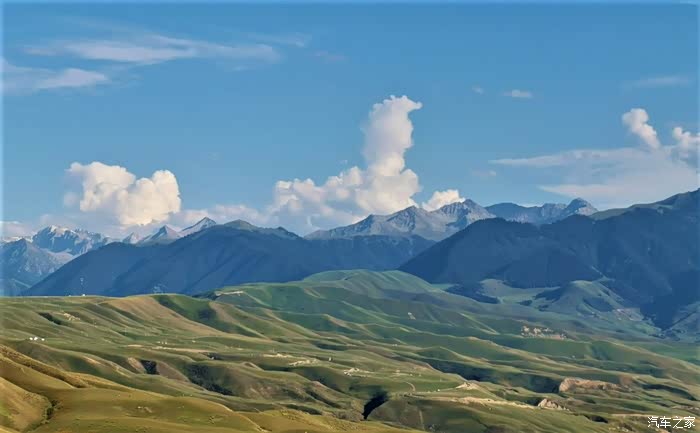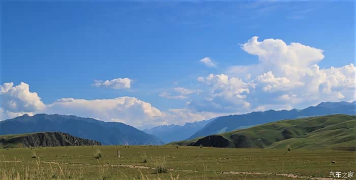 伊昭公路上辽阔的大草原。蓝天、白云,还有昭苏骏马。而通往昭苏的伊昭公路更是一路风光、一路美景