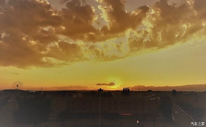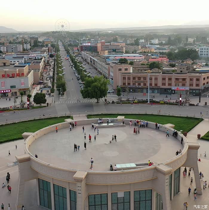 远处的摩天轮是特克斯八卦城的标志性物体——太极眼摩天轮,位于县城中的太极公园内,据说时拍摄八卦城最佳的地方