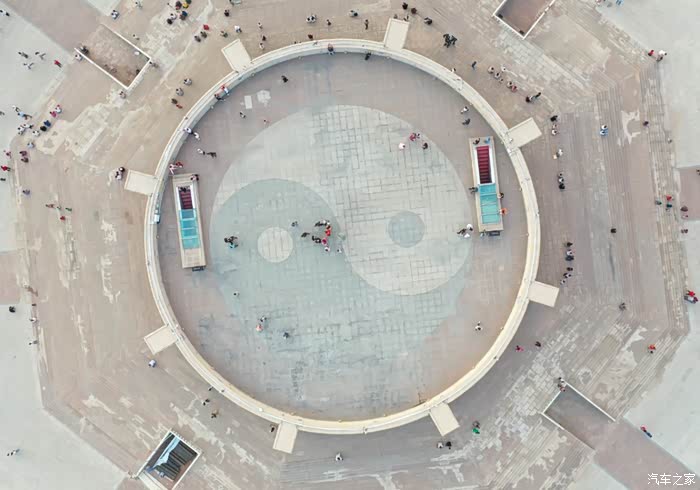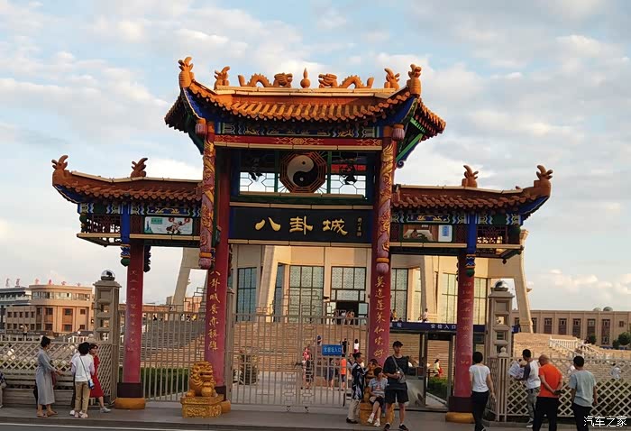 传说当年乌孙王建城时,正是以太极坛为中心,用了八匹大马朝8个方向拉线割地,向外辐射与4条环路相交而成了一个八卦雏形