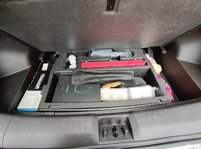从传统汽油车转过来的自己就将增购备胎提上议事日程,正所谓不怕一万,就怕万一。从海鲜市场上找到了一位车友选装了备胎然后卖出来的,经过讨价还价最后定了下来,卖家地点离自己也才50公里,所以就直接过去提货,各方面还算满意,也有筒套、千斤顶等工具。最令人意想不到的是,原本我想着放了备胎,那原车配的后备箱泡沫就不能放了,谁知稍为调整一下竟然放了下去,而且还有很多空间放小的东西,这样后备胎底下一层就井井有条,不会混乱,希望这个发现对想买备胎的朋友有所参考。