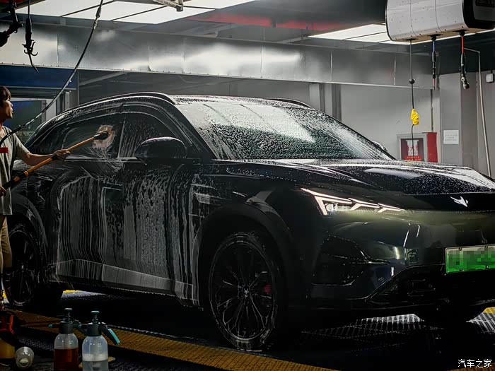 外观:耐看,越看越顺眼!当初买它,颜值占了挺大分。开了这么久,感觉这设计真挺经得住时间看。不像有些车,乍一看贼炫,看久了就腻歪。我这车是极夜黑,洗干净了在太阳底下,那个漆水的光泽度,啧啧~还是觉得有高级感。车头那个发光的狐狸标,晚上解锁或者靠近,幽幽亮起来,仪式感拉满,而且辨识度确实高,老远就知道是咱家的车。侧面线条干净,隐藏门把手用习惯了贼方便,关键是降低了一定风噪。车尾的贯穿灯晚上点亮效果贼棒,不是那种刺眼的亮,是很有质感的光带。总结就是:不张扬,但有设计感,停那儿不丢份儿,看久了也不烦!今天下午有空(悄悄溜出来...)给的小狐狸洗个澡,去除一下车身的树胶和脏东西。然后再顺便充个电!