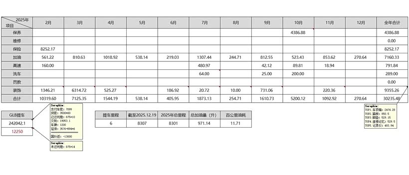 2025年小奔用车总账单。