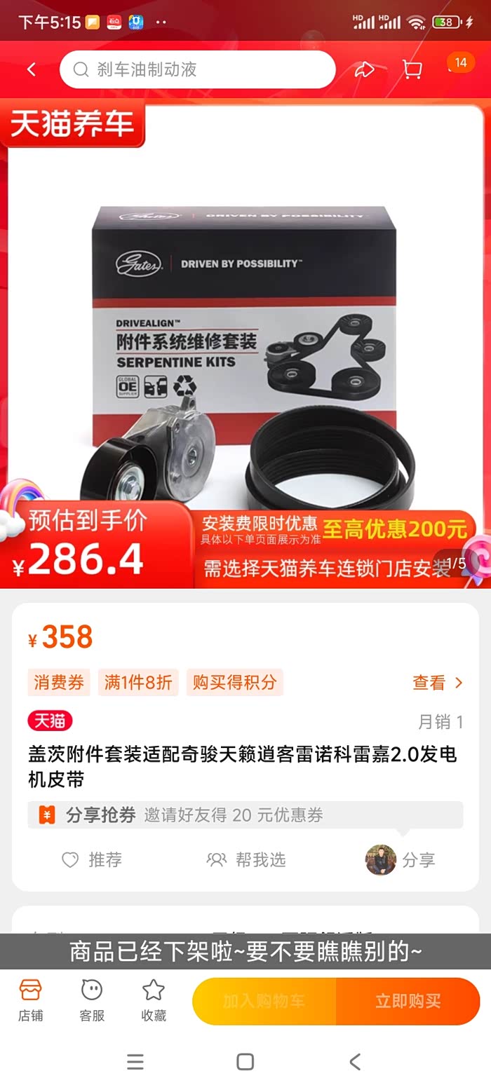 13万多公里觉得发电机皮带该换了,正好618天猫养车活动286元包安装就下单了,拆涨紧器还是挺麻烦需要拆机脚胶螺丝顶一下发动机,皮带有轻微开裂在开一年问题也不大,不过还是换了放心……