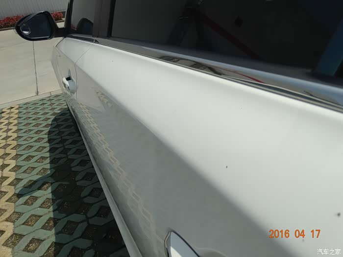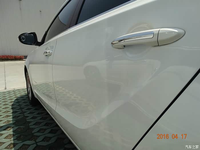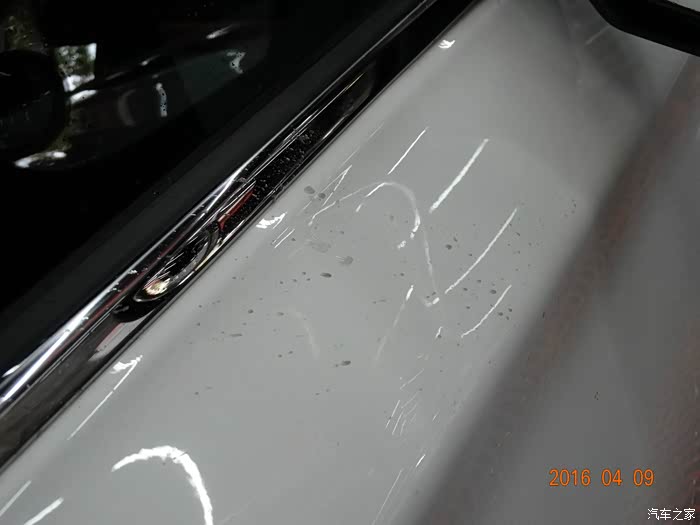 车身侧面,仔细看还是有淡淡水印,但是比以前好多了。两次的雨水洗礼这样也不错了。