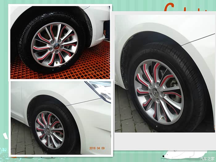 这个拼图中右边那张竖图就是喷完5分钟后的照片,很自然的新。不像喷轮胎蜡那种油量。提到轮胎蜡施工的师傅讲到劣质的轮胎蜡只能曾亮,对轮胎养护起不到任何作用,个别的还会适得其反加快轮胎老化。