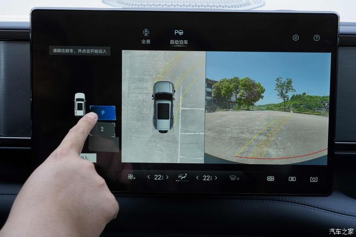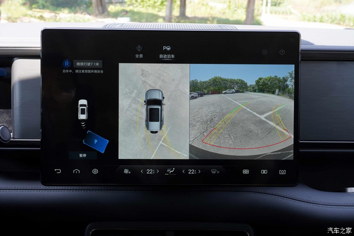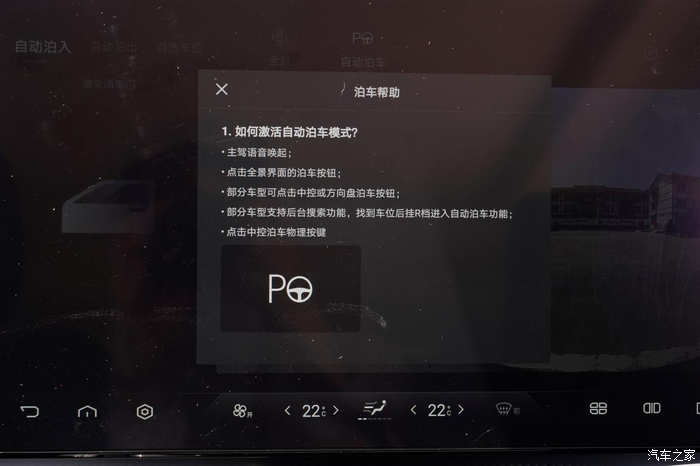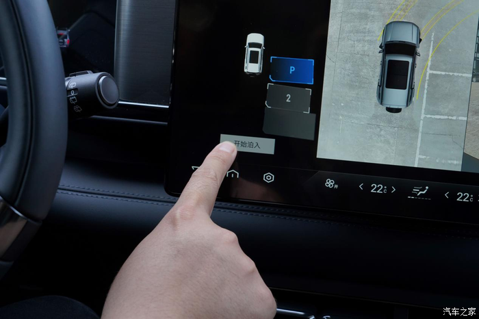 先和大家说说自动泊车怎么启用,可以语音激活,也可以按中控区的物理按键激活,还有一种方式就是挂倒挡,然后在中控屏上点击自动泊车的选项。