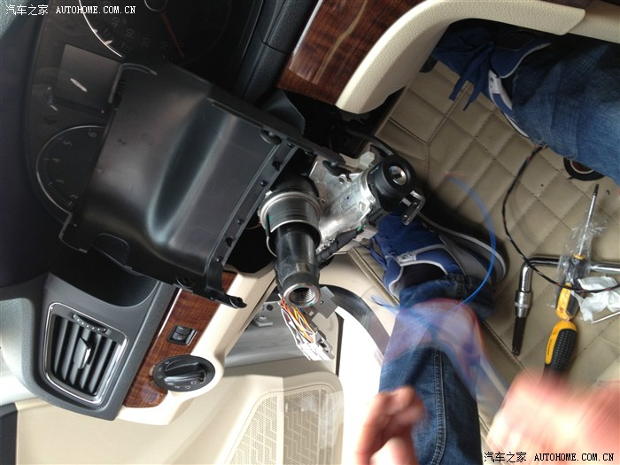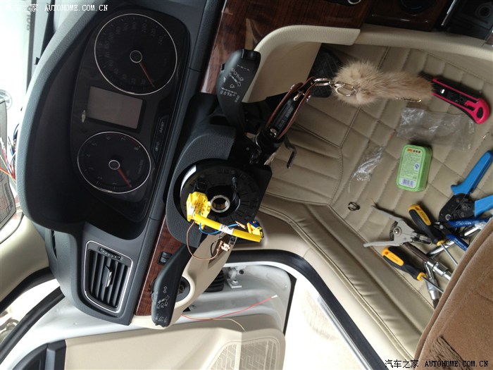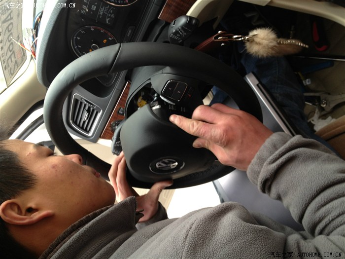 题记:一直很羡慕高配的多功能方向盘和定速巡航,因为觉得很实用,我是一个很喜欢听音乐的人,所以很喜欢换歌,加减音量之类的动作,但是总觉得麻烦,所以就有了换方向盘的想法。定速巡航用处也就是跑跑长途,确实省力气。之前看了坛里别的人改了,觉得很麻烦,有了想要退缩将就着用算了的想法,但是突然某天在郑州找到了一家很专业的大众朗逸,波罗,明锐的地方,就抱着试一试的心态去了。到地方之后,还有一辆波罗车也准备改,我就索性也直接改了算了。啰嗦这么多,下面进入正题!