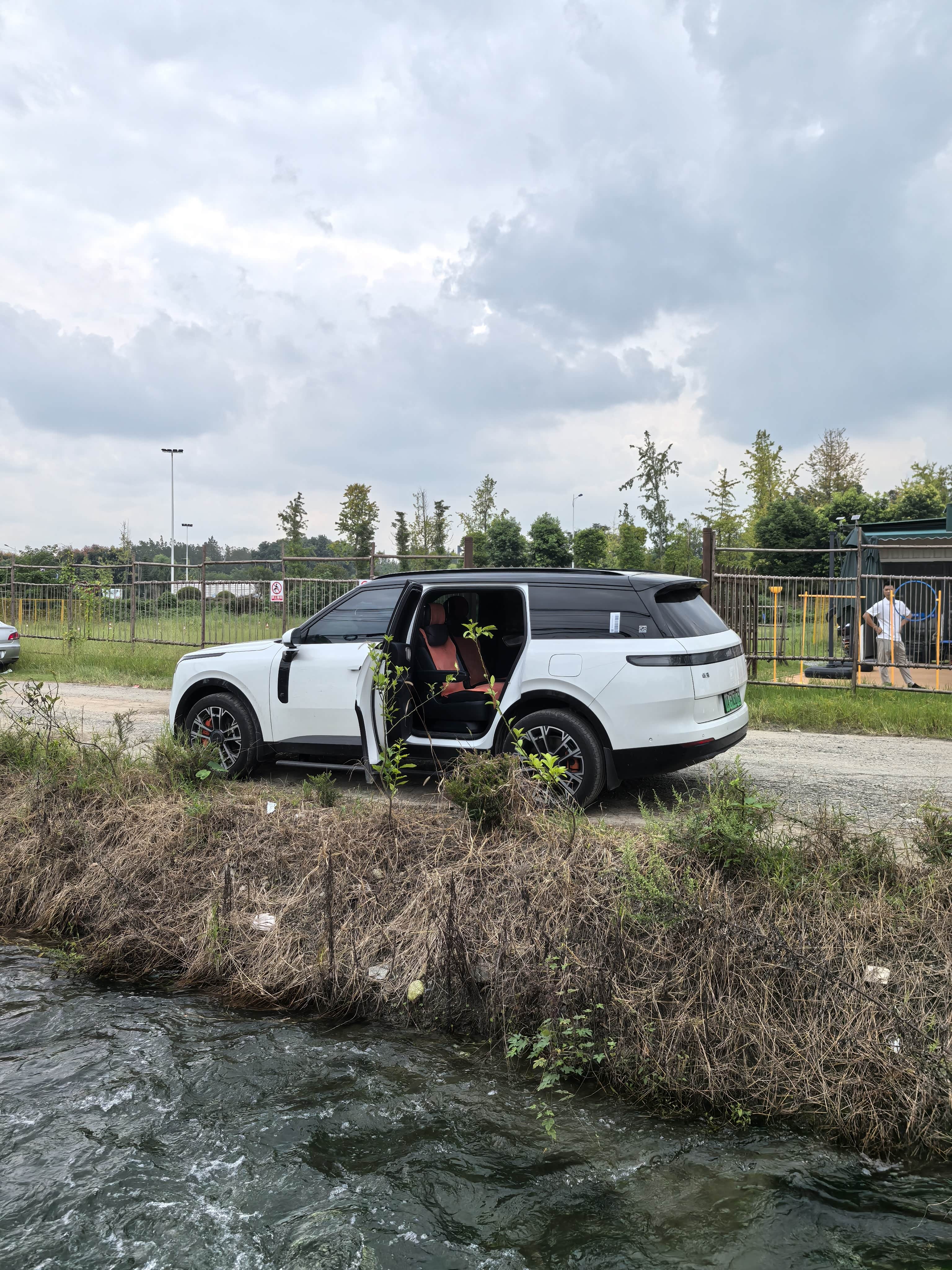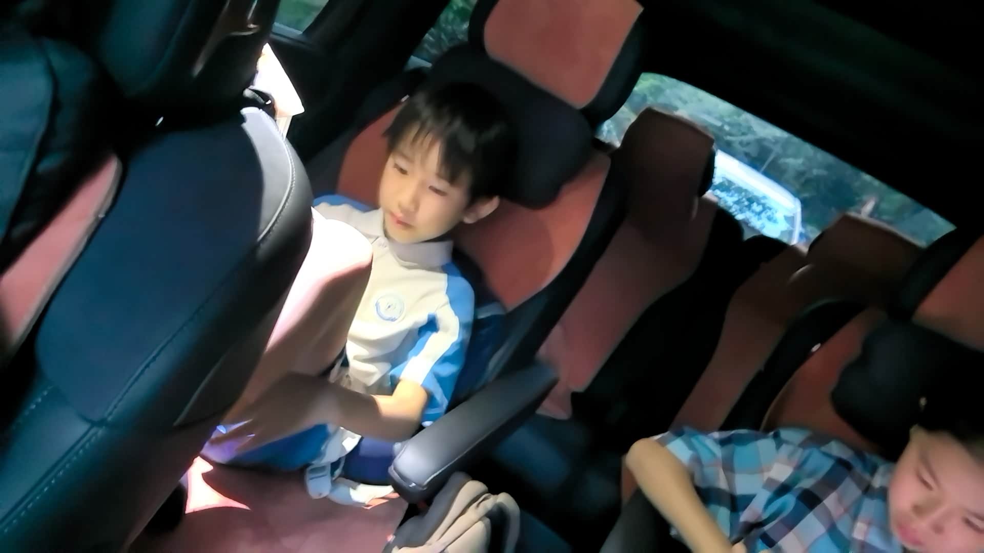 终于开到目的地,车停在路边,小朋友车上一起看大屏。外放电接上,就可以很愉快的开始准备露营。